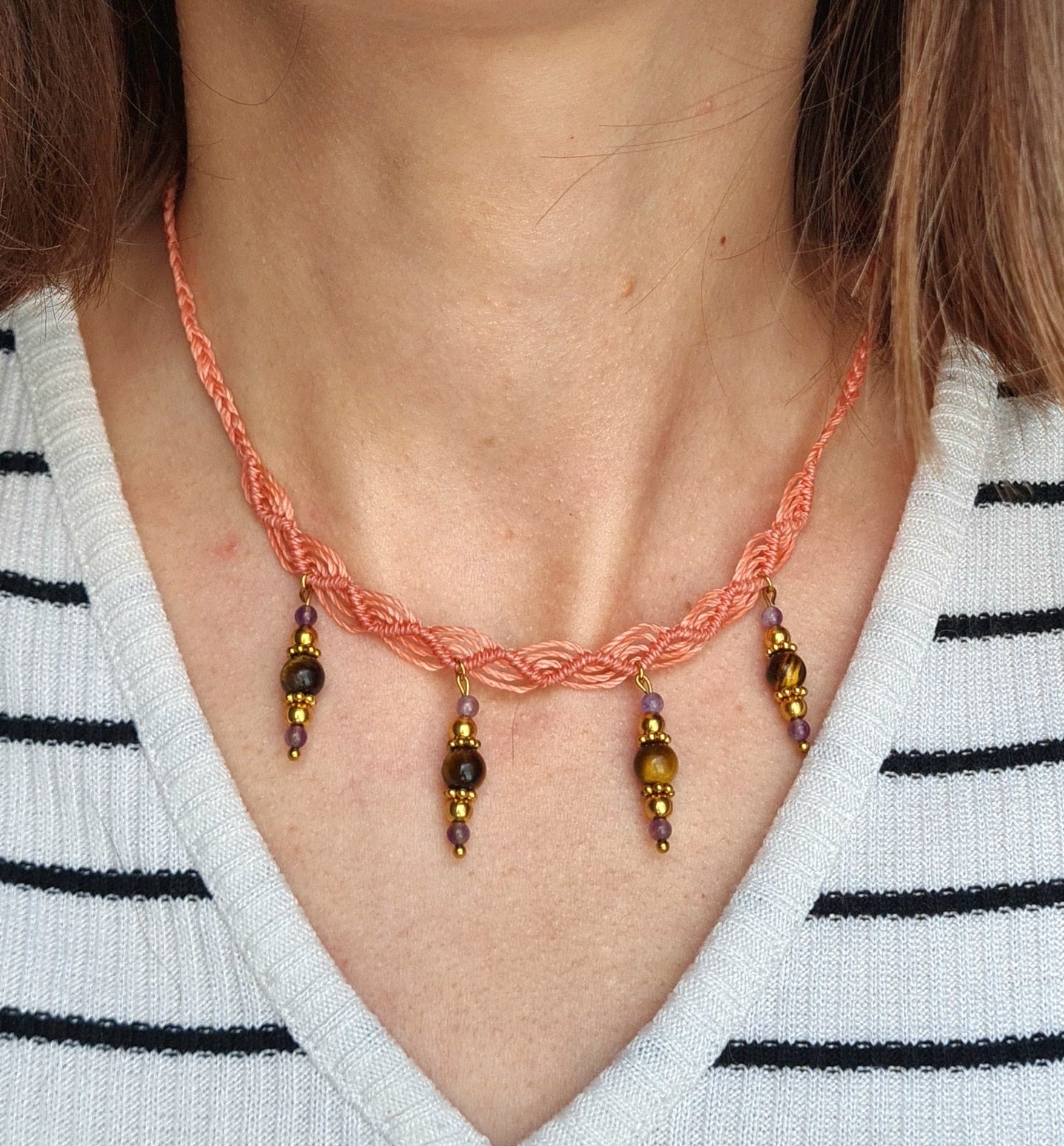 - Réalisé en micro-macramé avec du fil brésilien résistant, il est sublimé par de véritables pierres naturelles aux vertus énergétiques.